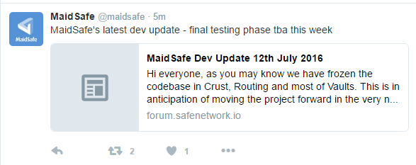 - Official release of the Alpha (within 6 weeks) where Maidsafe officially announces they go “live” in several interviews and with installers downloadable from the Maidsafe website.