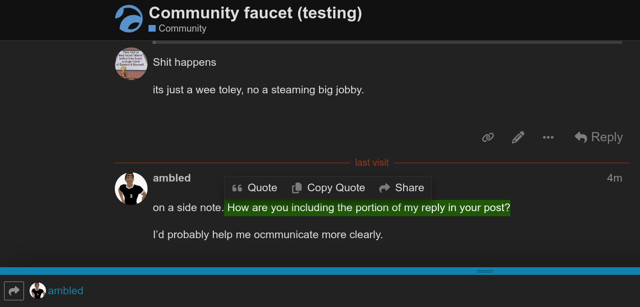 At first blush, Iām concerned about tying the faucet to a forum post. The longer the thread grows, the more work the faucet has to do.