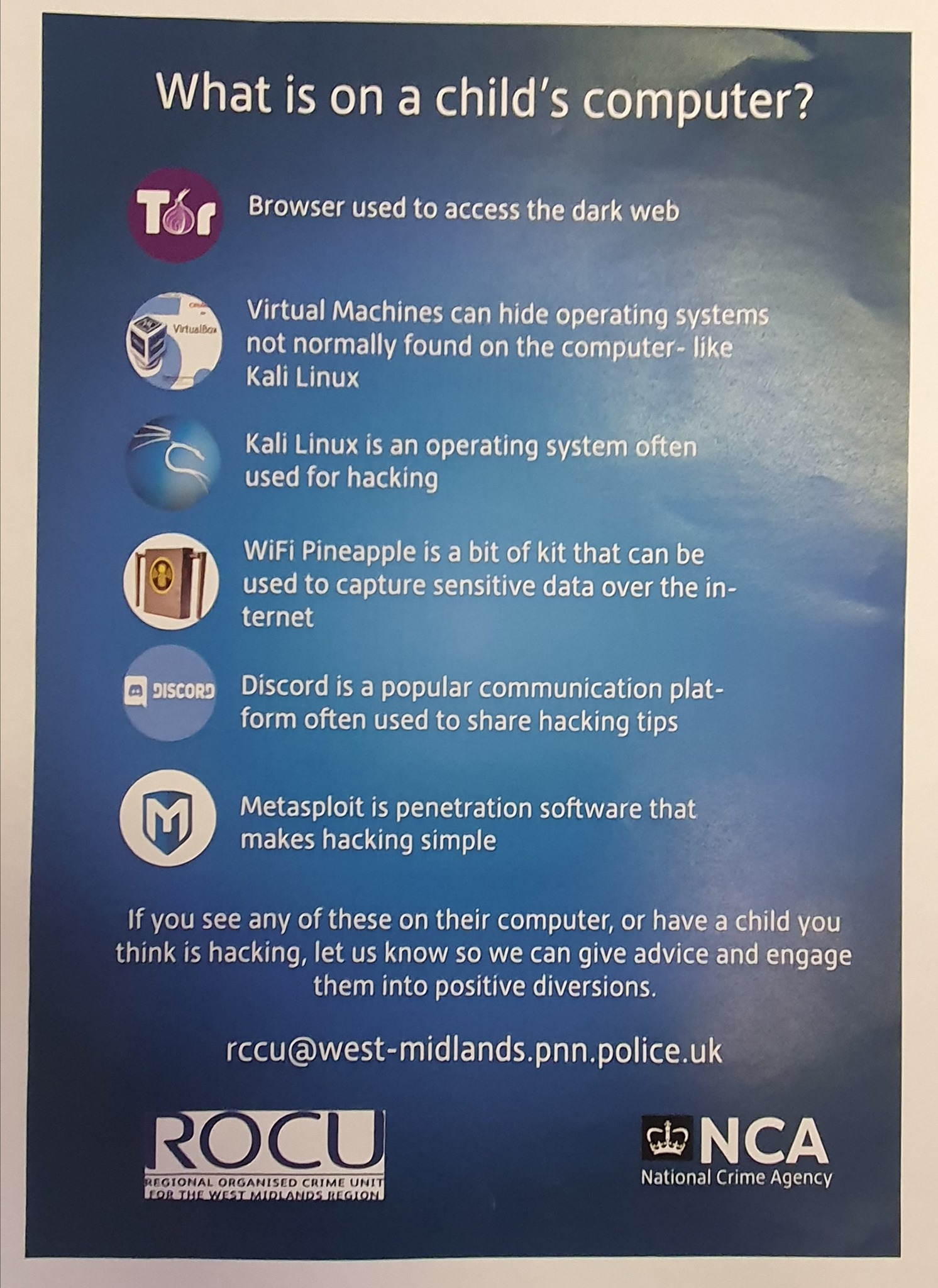 Stupidity at its best. Apparently, you should now report to your local authority in the UK if you see any kid using things like Tor, VMs and Linux. Source: https://twitter.com/nixcraft/status/1227981847465869312